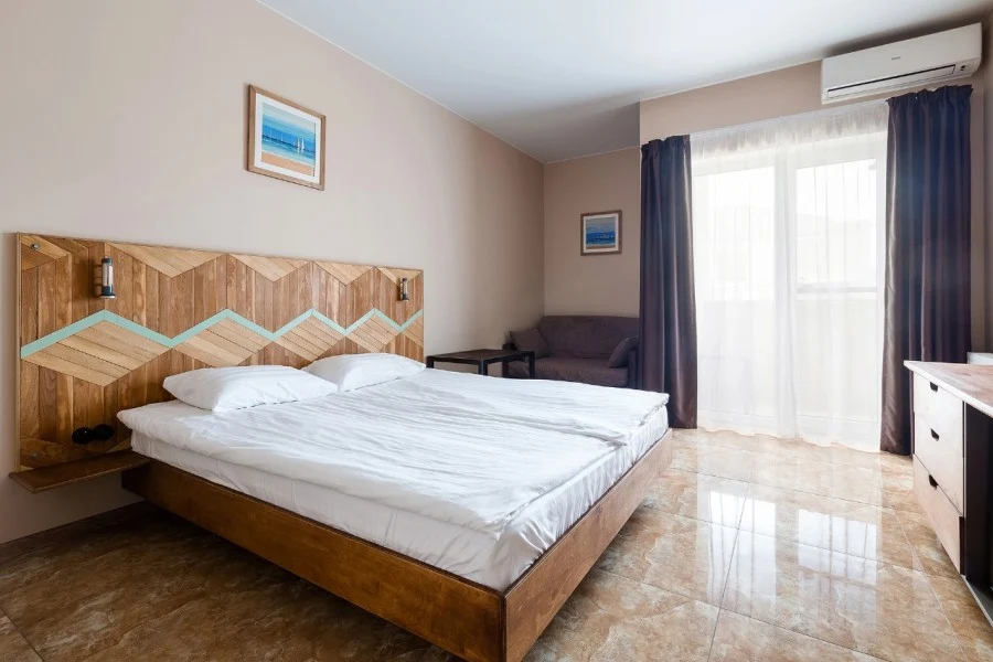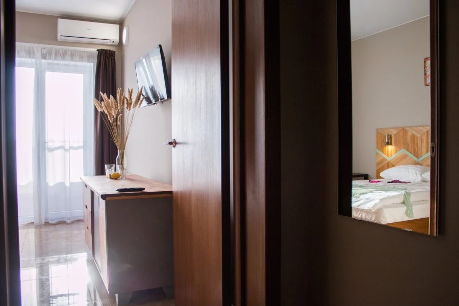 Стандартный номер с большой двухспальней кроватью и раскладным диваном. В номере имеется собственный санузел с душевой кабиной, кондиционер, холодильник и балкон.